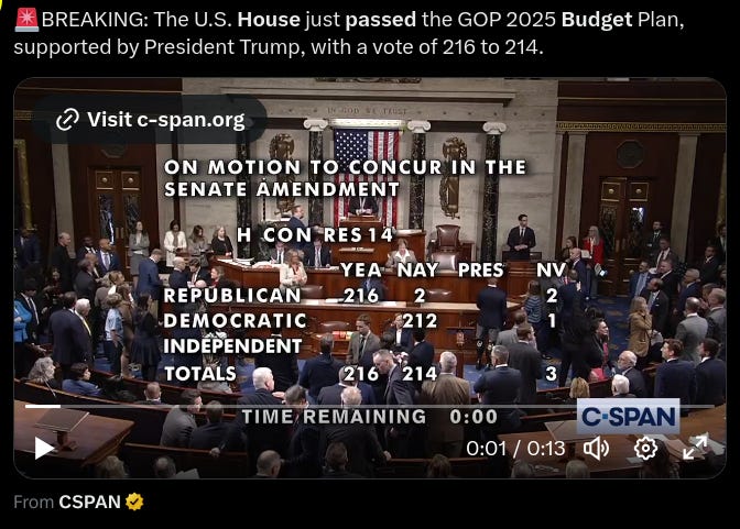 It wasn’t just bond traders the administration had to placate. The second reason I believe for the reversal of tariffs, was Congress. On April 10, the House prepared to vote on a critical budget resolution—a key that would unlock reconciliation powers vital for the next round of President Trump’s tax reforms. Conservative lawmakers eyed the ballooning yields uneasily, worrying that further chaos in the Treasury market would undercut not only the U.S. dollar but the credibility of the entire Republican fiscal platform. A debt crisis is no one’s campaign advertisement.