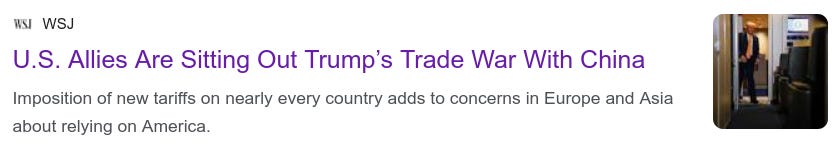 Notice the market and world no longer cares about the 10% revenue tariff anymore. Hardly gets a mention. The WTO is dead. So is "free trade" which, judging by all the nations complaining, was never free. It was just them making things for the US. Free for us to shop cheaply at Walmart and the Dollar Store. Woohoo!!!